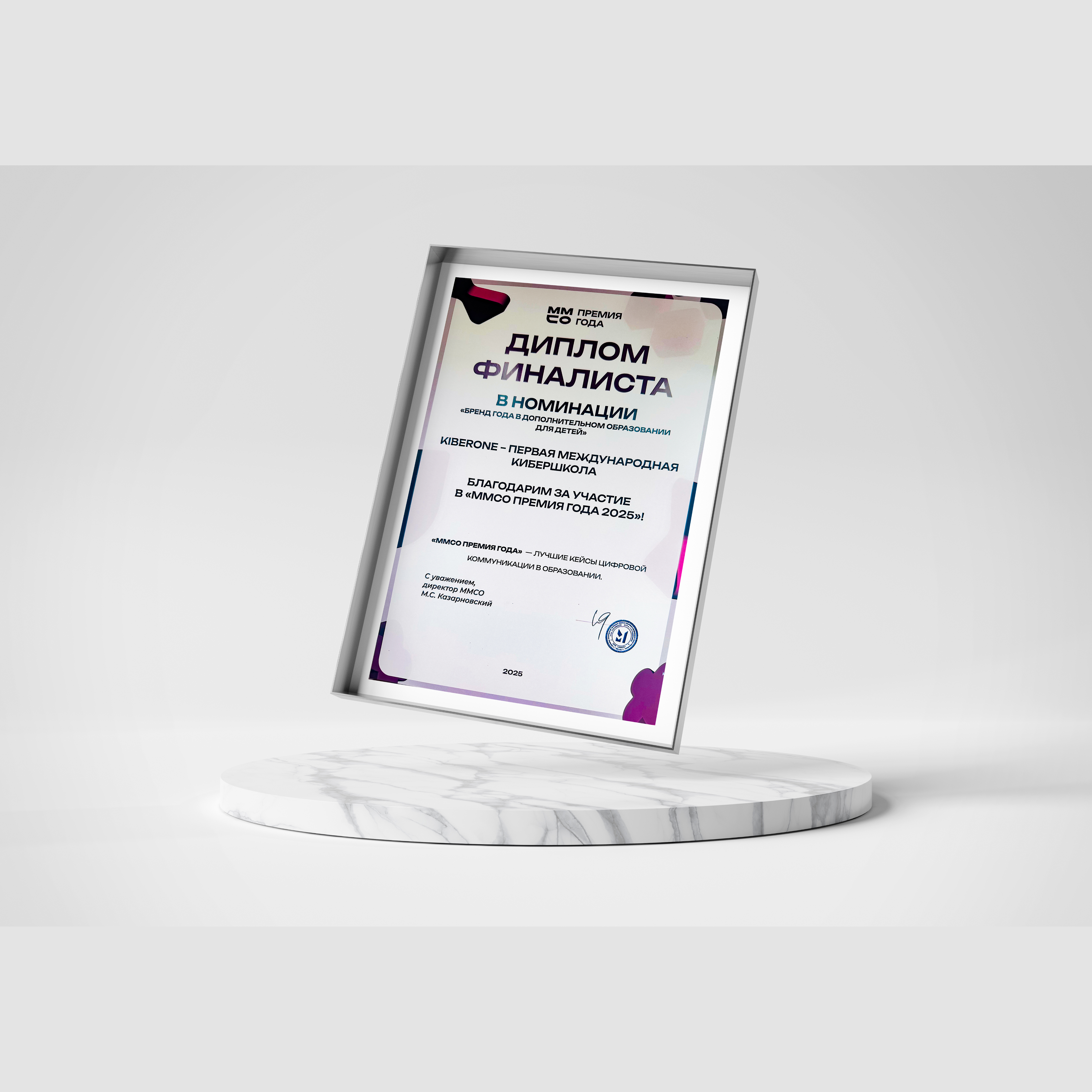 KIBERone – финалист главной образовательной премии страны «ММСО Премия года»! Премия «ММСО Премия года» – это признание нашей главной миссии: технологии – это инструмент, который улучшает жизни людей. KIBERone – превращаем зависимость от гаджетов в полезный навык, где ребенок не просто играет в игры, а создают их по своим правилам, не листает ленту соцсетей, а изучает то, что будет полезно сейчас и в будущем. Мы готовим не пользователей, а создателей цифрового мира.